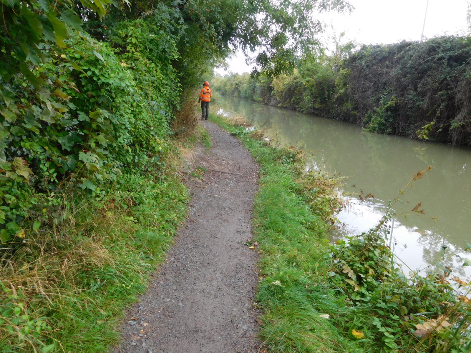 After the expected amount of crossing and recrossing city streets to get out of town, plus passing through the typical industrial mess on the outskirts, we found ourselves deposited on the towpath of the Avon canal. This was of course quiet and pleasant, but the surface often was not great, so we ended up pushing.