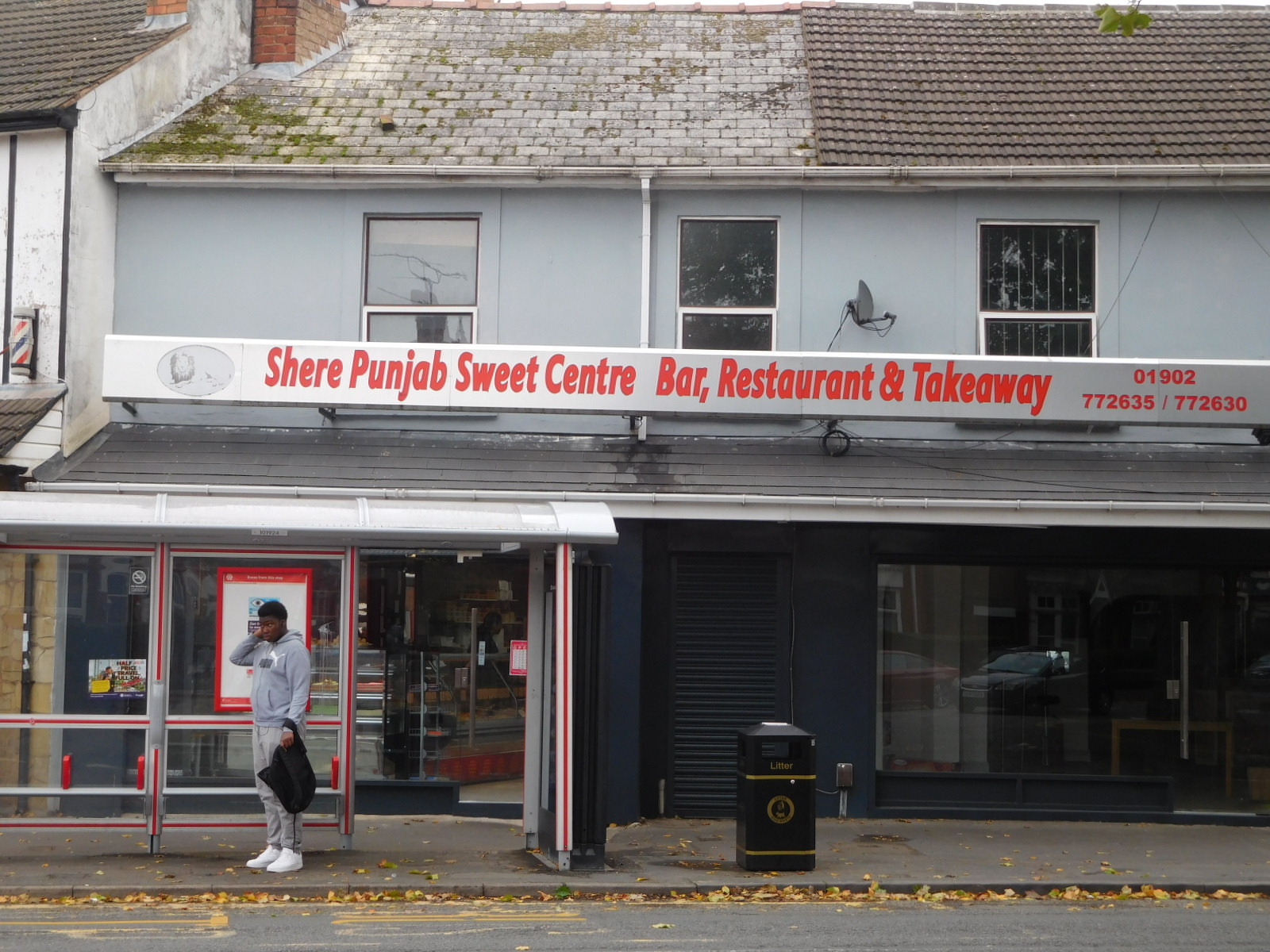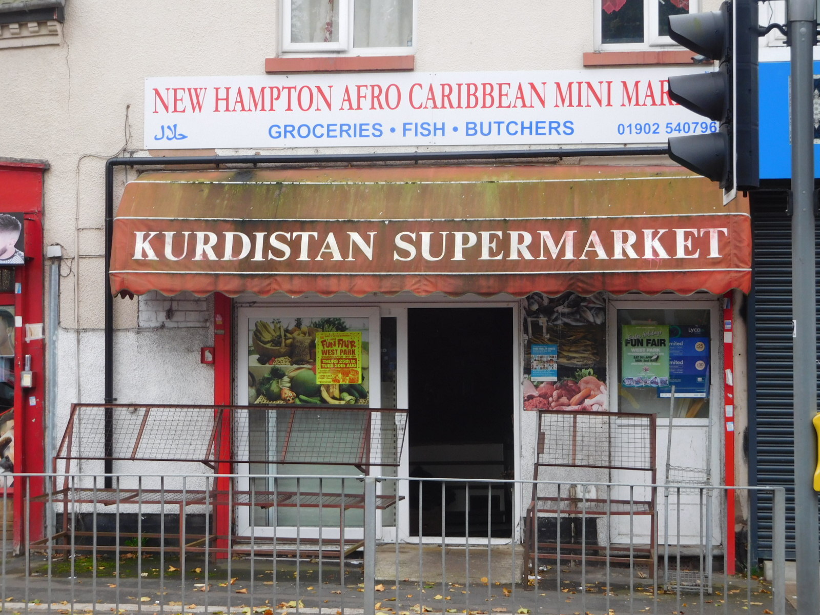 As we expect, it was not totally quick or obvious to find our way out of Wolverhampton on our track. About an hour later and two km further on, we were still in some kind of Wolverhampton neighbourhood. Around then I declared my assessment that Wolverhampton had a majority of brown people. Dodie agreed, but cautioned that this could just be the neighbourhood we were in. Whatever the case, we were finding lots of interesting stores and restaurants, more interesting than in a standard English town.