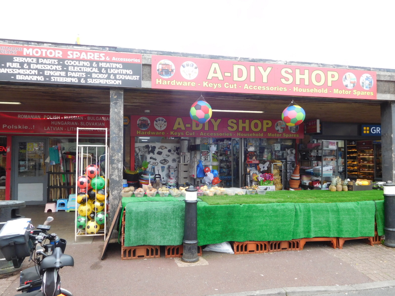One shop that also particularly caught our attention was the one below, with "motor spares and accessories" on its signboard. Motors are on our mind a bit, given the e-assist problems. We had a recommendation to try "Sugru", a moldable silicone type material, to seal that problem controller. The shop had never heard of Sugru, but Dodie did come out with another, more mundane, goo. We'll try it soon. We will also need some wire connectors as part of trying to install the controller, but we didn't try to find these at the shop. Dodie declared the ladies running it as fairly useless.