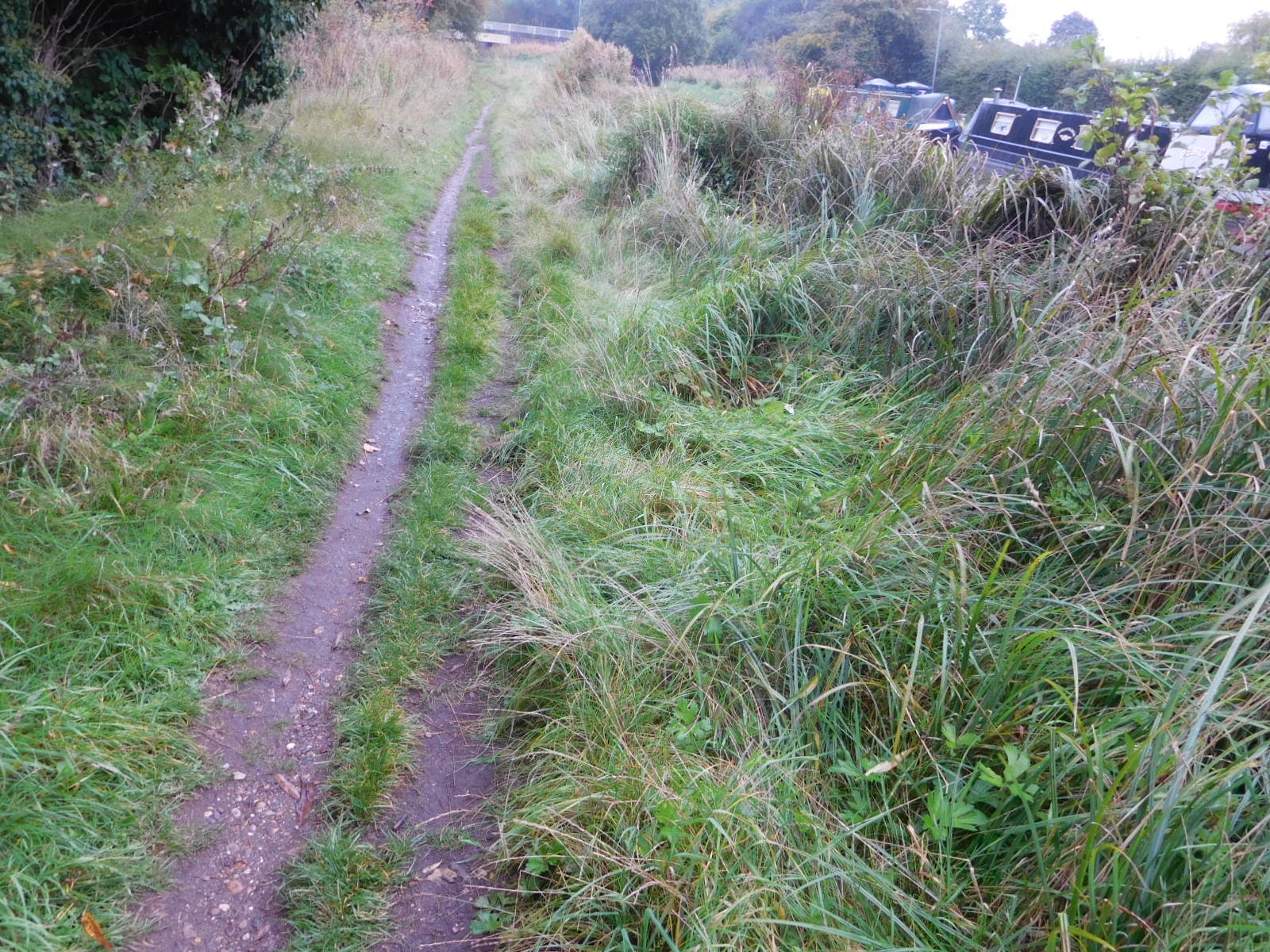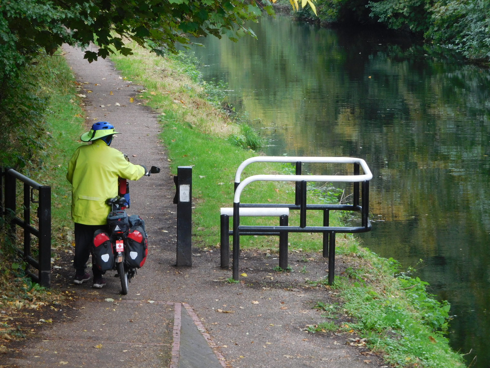 Our time spent noodling through suburban Wolverhampton came to a close as we were inserted onto the tow path of the Staffordshire and Worcestershire Canal. The entry to the tow path had one of those pernicious "monkey puzzle" gates, but fortunately it was being by-passed.